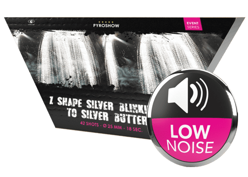 Floats like a butterfly, but it doesn't sting like a bee! Silver Blink Tail To Silver Butterfly professional range cake. With forty-two shots pulsating from left to right. And then right to left. A spectacular example of a low noise barrage. Offering stunning silver blinking tails to over 60 feet. Before shattering into hundreds of blue and silver butterflies. Instantly sending them dancing across the night sky. In addition, Silver Blinking Tail To Silver Butterfly has a duration of 25 seconds. With a net explosive content of 500 gm. Including a noise level of 3 out of 10. With a spectator safety distance of 49 feet. Or 15 metres. Like the serene radiance of the Silver Blink Tail To Silver Butterfly? Then give the splendour