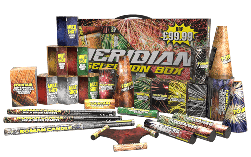 Light up your night with the Meridian Selection Box, a premium collection of 26 vibrant CAT F2 fireworks perfect for garden displays. From colourful fountains and popping roman candles to a spinning Catherine wheel and six small battery fireworks, each piece brings its own burst of colour, sound, and sparkle.