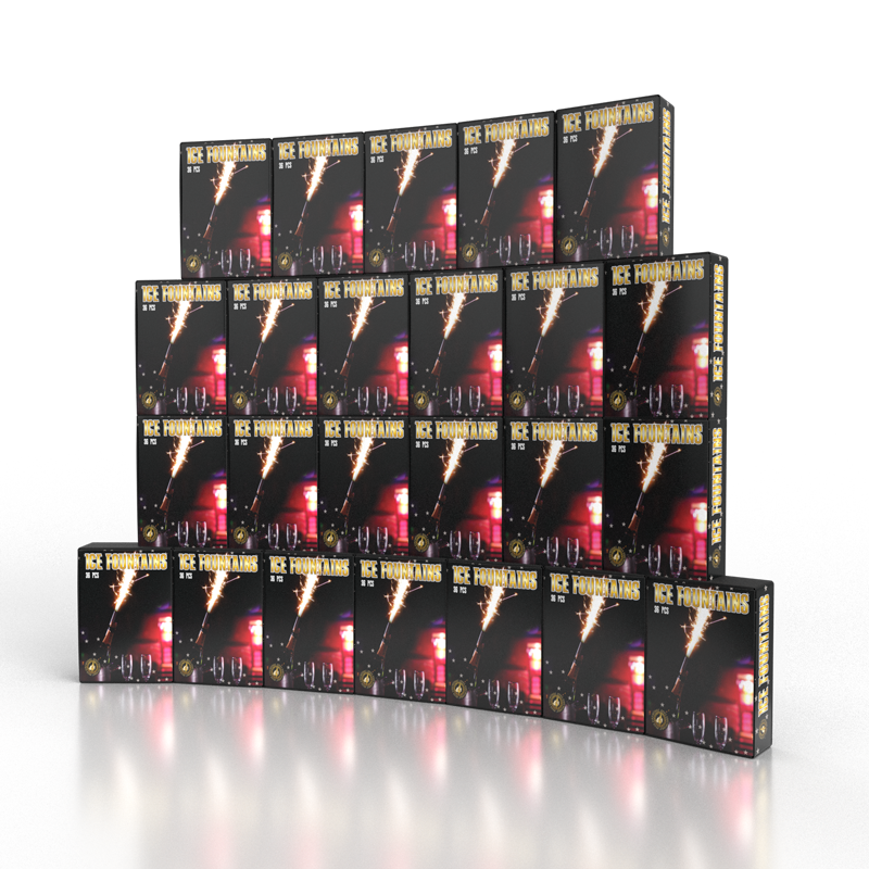 The Premium Indoor Ice Fountain Case of 864 is an excellent indoor fountain/bottle sparkler used in club, restaurants and at parties. While commonly attached to champagne bottles via a clip or inserted on top of a dessert or cake. They are ideal for any celebration. Producing a bright silvery gold fountain effect. With a duration of approximately 45-55 seconds. Wrapped in a classy black label. They are non-toxic and contain no hot wires. While producing a low level of smoke and odour.
