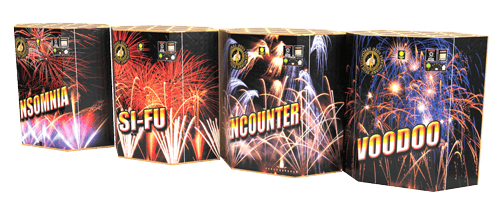 Giving your event these four big bore barrages. Thirteen shots in each cake. With plenty of oomph. Above all Super Four Assortment gives you the following. Insomnia with a sharp red tail to brocade crown with red. Si-Fu with a clear blue tail to brocade crown with red. Encounter a pea green tail to brocade crown with crackling. Voodoo with a shimmering silver tail to crackling cauliflower. In addition to each cake lasting 25 seconds. Therefore giving you fantastic 1 minute 40 seconds in total. Most importantly, Super Four Assortment will feel like a professional show. With each barrage offering 208gm of net explosive content. That a total of 832gm of NEC. From this category 2 firework.